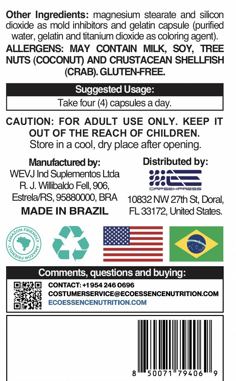 Our products strictly follow all the norms and quality standards established by the Food and Drug Administration (FDA), being approved in all the necessary tests. Ecoessence Notrition uses natural ingredients and sustainable processes to offer quality supplements, which meet the needs of the consumer and the environment.